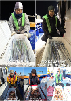 #조황소식 #출조안내 ☆ 여수 드림스타피싱 출조안내 ☆ 왕열기ㆍ왕갈치 vvip16석 왕갈치ㆍ왕열기 병행 사냥 돌입!~ 사전 예약 가능!~♡ 12월!~ 왕열기ㆍ왕갈치 병행 출조! 한치다단채비도 챙겨주세요!한치가 제법 보이네요!~19일 장원 25킬로! 대박이였네요.물때ㆍ날씨 최상!~또 빡시게 돌립니다.(새벽3시출항예정ㆍ29일 7시 입항예정) 28일 일요일 (갈치ㆍ열기) 3자리여유출항확정! 출항확정!출항확정!!!~♡ 29일 월요일 자리여유30일 화요일 자리여유31일 수요일 예약마감26년!~1월1일 해돋이!~ㅡㅡㅡㅡㅡㅡㅡㅡㅡㅡㅡㅡㅡㅡㅡㅡㅡㅡㅡㅡㅡㅡ평일 19만원~ 토요일만 21만원 평생 80년 잔나비 갑장 이벤트!~80년생 장르 불문! 무조건 만원 할인!!!여성분도 무조건 만원 할인!!!~ㅡㅡㅡㅡㅡㅡㅡㅡㅡㅡㅡㅡㅡㅡㅡㅡㅡㅡㅡㅡㅡㅡ♡ 조황소식 ♡삼대구년만에 소수인원 모시고,갈치ㆍ열기 사냥 다녀왔네요.새벽부터 서둘러서 많이 이른 출항하였는데,열기는 초반에는 나름? 상황이 좋았는데, 물심에다 바람에 너울까지 쓰리콤보로 괴롭히네요.ㅜㅜ열기는 그렇게 실패!~♡확실히 쌧바람에는 장사없네요.그렇게 조금 빠르게 갈치 포인트로 이동~어군ㆍ수온 찾아서 이리저리 빙글빙글 돌면서 자리선장 후 풍놓고 작업 시작.해떨어지기전까지 배에서 삼지 비슷한거 한마리 땡!힘들어지나? 싶지만 집어등키고 한시간넘게 기다리는데 잔씨알만 한두마리 두세마리 나오네요.그래도 버팀!ㅋㅋ집어층이 생기고 집어가되면서 전체적으로 한마리씩 좋은씨알이 섞여서 물어주네요.그렇게 또 버팀!ㅎㅎ한방에 사지급 2마리4마리 잔씨알속에 따박따박 물어주니 대성공!!!씨알이 어마무시합니다!~~~오늘로 갈치 졸업하려고 했는데, 오늘 출동하신 선수분들이 다음 물때에 한번더 도전하자고 하시네요. 고민 고민?오늘도 부지런히 움직이신 우리 선수분들!~파이팅!~~~ㅎㅎ늘~한마리라도 씨알 좋은놈으로 낚아가실수있게 파이팅!~ 하겠습니다.좀더 노력해서 거짓없는 진실된 좋은조황으로 보답하겠습니다~♡늘~감사합니다.ㅡㅡㅡㅡㅡㅡㅡㅡㅡㅡㅡㅡㅡㅡㅡㅡㅡㅡㅡㅡㅡㅡ자선장으로 홀로 운영하다가보니 바다나가면 통신불능상태가 일상이네요.ㅜㅜ예약은 무조건 예약사이트로 예약 부탁드리고 혹?예약사이트 사용힘드시면 문자로 성명/출조인원/ 출조날짜 순으로 문자 남겨주시면 확인하는대로 연락드리겠습니다. 궁금한점 있으신것도 문자 주세요!~♡ 감사합니다.????♂️ㅡㅡㅡㅡㅡㅡㅡㅡㅡㅡㅡㅡㅡㅡㅡㅡㅡㅡㅡㅡㅡㅡ선장 사무장 구분없이 40대 선장1등, 선장2등!~자선장으로 운영합니다!~♡슨장2등은 짬밥에 밀려서 현재 사무장님!~^^*둘다 낚시에 미쳐서 이쪽으로 인생 몰빵!~ㅎㅎ늘~대박조황도 중요하지만 노력하는 선사로 기억에 남고 싶네요.ㅡㅡㅡㅡㅡㅡㅡㅡㅡㅡㅡㅡㅡㅡㅡㅡㅡㅡㅡㅡㅡㅡ양측 1번자리(1번/16번) 전체 추첨전~ 선수? 위주로 1번자리 원하시는 분 우선 손들어서 가위바위보!~ 이기신 분 자리배정 후 전체 추첨!1/8/9/16번은 대포(봉돌 투척기) X4인이상 무조건 일렬배정!~1~4 /5~8 / 9~12 / 13~18(생활낚시 5인 이상~)4인이상이 두팀이상일때 인원관계없이 무조건 현장에서 가위바위보!~~~8인 이상은 8인 한쪽으로 배정 후 나머지분들은 현장 추첨.연박은 이틀째 자리지정 삼일째 제추첨!~신분증 필수!~ 미지참 승선 불가!~멀미약!~ X (사무실도 배에도 없습니다.ㅜㅜ) 선장1등(선주)직통 : 010-5820-2208 선장2등(사무장)직통 : 010-6238-2749 예약문의 : 010-5082-2208 예약은 예약사이트로!~(선비예약사이트확인)예약은 입금순서대로 입금완료 확인후 확정됩니다.예약확정은 무조건 입금 순서대로!~♡미입금시 개인 통보없이 자동취소 됩니다. ▣ 네이버 밴드 : https://band.us/@dreamstar▣ 온라인예약 : http://dreamstar.sunsang24.com/*** 여수 드림스타피싱 예약 안내 *** 먼 길 찾아주신 조사님들께 최고의 포인트와최상의 서비스로 보답하겠습니다!아름다운 바다와 함께하는 소중한 시간~항상 친절히 안내 드리겠습니다.▣ 예약문의 : 선장 직통 : 010-5820-2208 / 예약 문의 : 010-5082-2208▣ 온라인예약 : http://dreamstar.sunsang24.com/ - 예약은 입금완료 확인후 확정됩니다.▣ 네이버 밴드 : https://band.us/@dreamstar▣ 오시는길 : 전남 여수시 신월1길 26-2, 신월동 (드림스타피싱)▣ 배타는곳 : 매장 앞 방파제 (매장에서 열 걸음)▣ 계좌번호 : 국민은행 / 9 6371 6123 77 / 김태홍