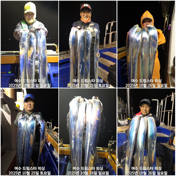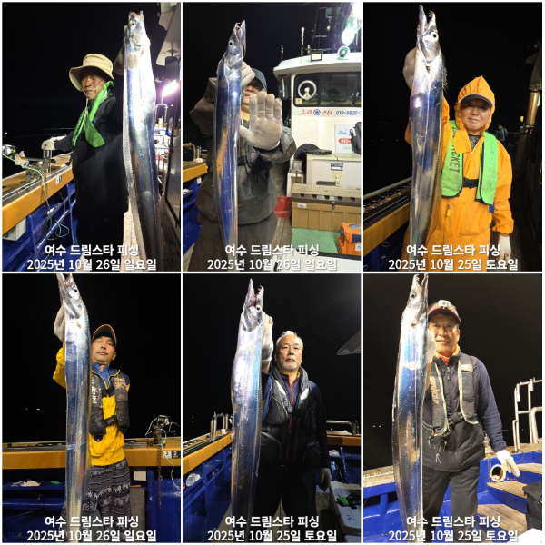 ![]() ![]() ![]() ![]() ![]() ![]() ![]() ![]() #조황소식 #출조안내 ☆ 여수 드림스타피싱 출조안내 ☆ 왕갈치 vvip16석 10월ㆍ11월 왕갈치 본격 사냥 돌입!~  출항시간!~ 10월~ 27일 월요일 기상악화 11월~ 1일 토요일 (돌문어) 예약마감 선비는~8만원(5시~14시까지) 3일~부터  쭈욱 깔치!~ 평생 80년 잔나비 갑장 이벤트!~      선장1등(선주)직통 : 010-5820-2208 ▣ 네이버 밴드 : https://band.us/@dreamstar *** 여수 드림스타피싱 예약 안내 *** 먼 길 찾아주신 조사님들께 최고의 포인트와 아름다운 바다와 함께하는 소중한 시간~ 항상 친절히 안내 드리겠습니다.